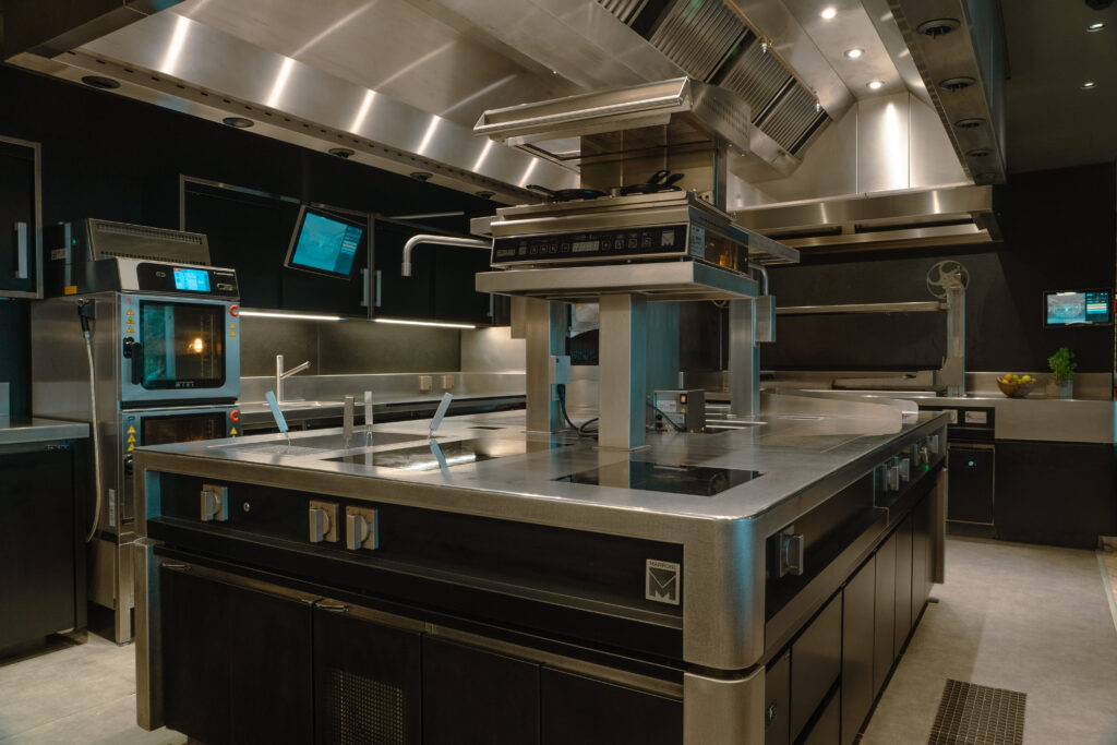 The whole kitchen was designed in close collaboration with Marrone and Daios Culinary team. The custom central cooking island was designed in such a way, that it can be operated by all 4 sides.