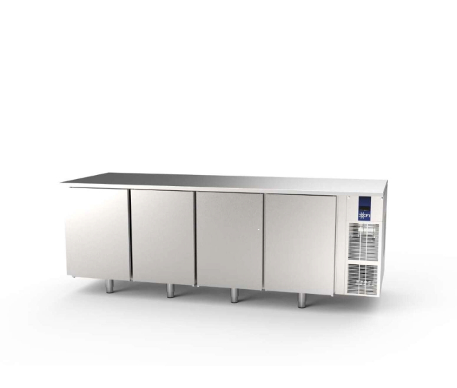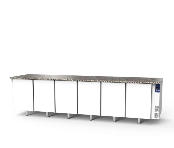 Οι Blue Rock είναι αποσυναρμολογούμενοι ψυχόμενοι πάγκοι εργασίας με στατική θετική ψύξη (+2°C έως +15°C), σχεδιασμένοι να φιλοξενούν δίσκους ή σχάρες 400×600 mm (είσοδος 400).